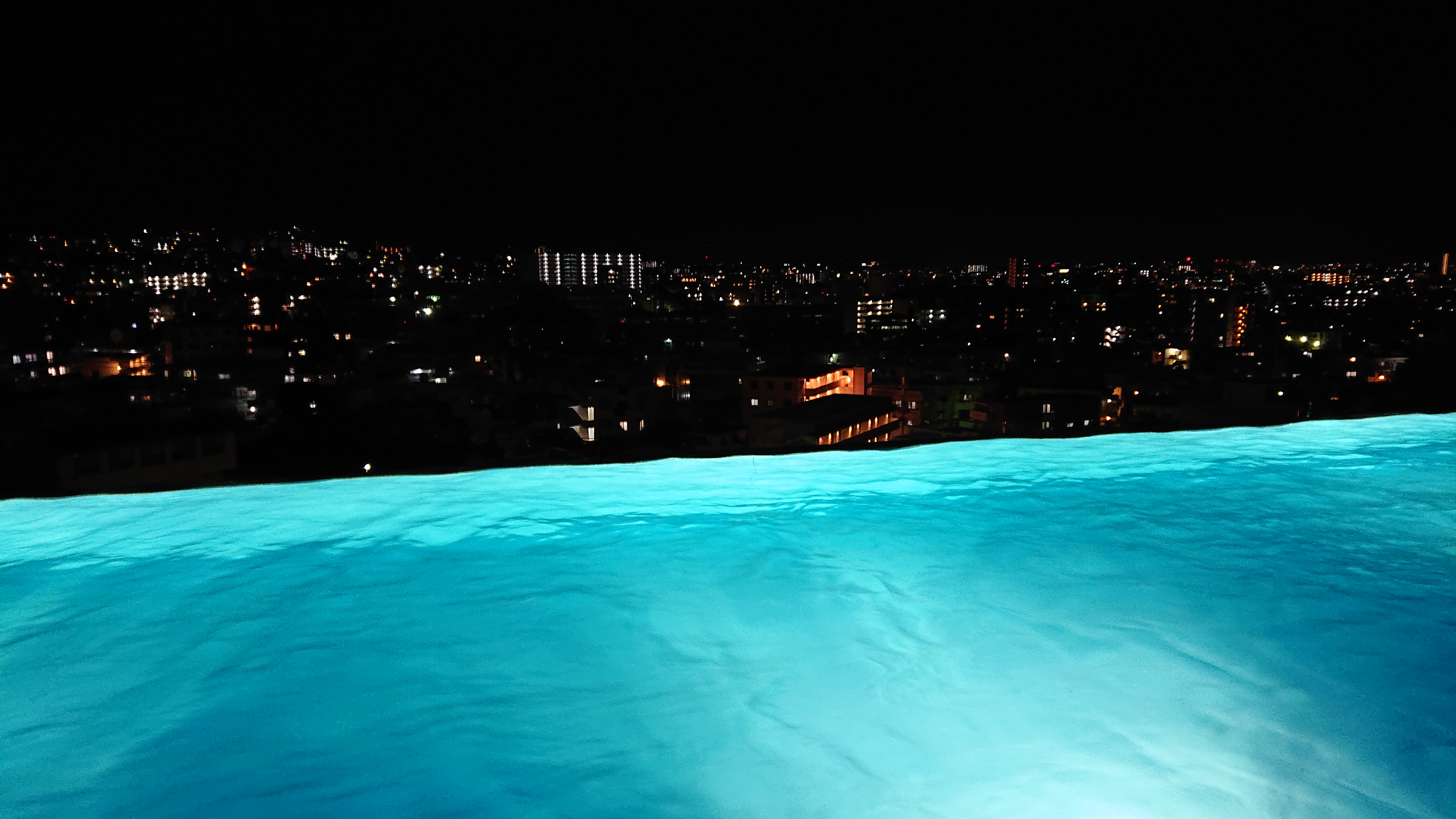 プール自体は少し狭くて、他の人もいるし、泳ぐには不向きかな。