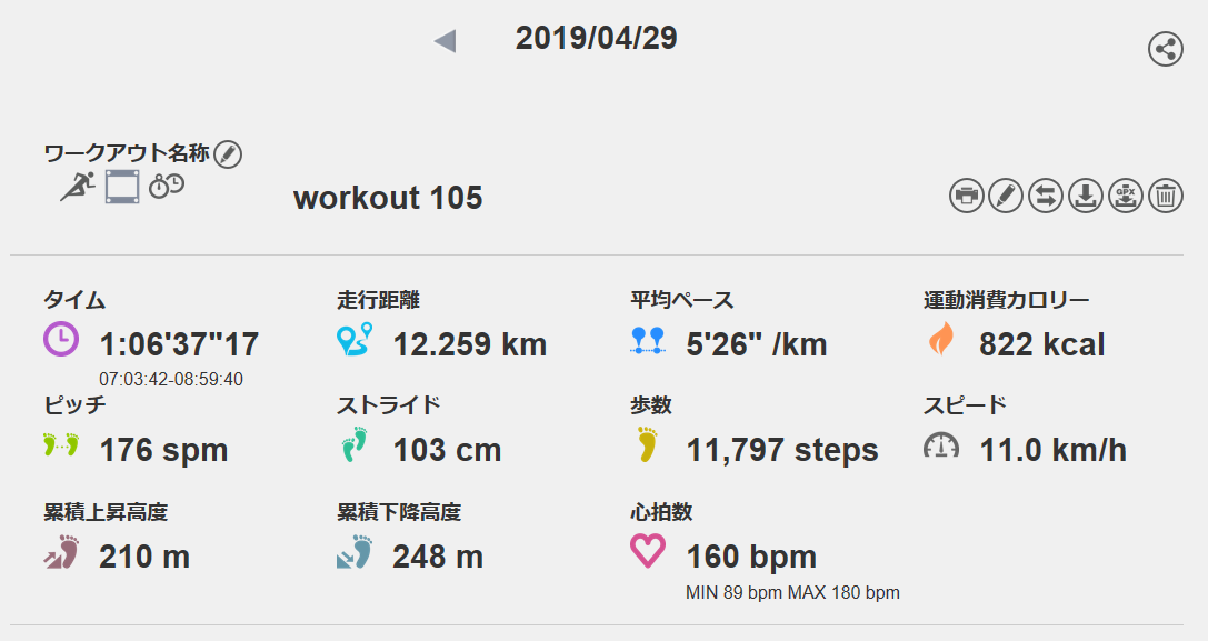 4月29日の走行距離 12.25km (5分26秒/km)(160bpm)