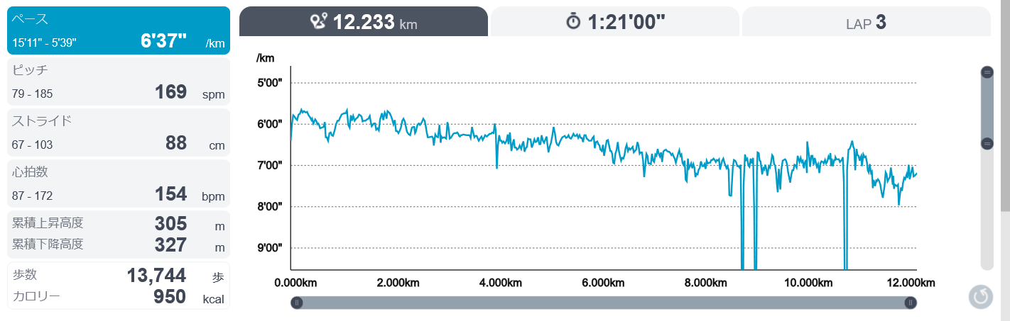 今日も中盤から終盤にかけてペースが右肩下がりだった。