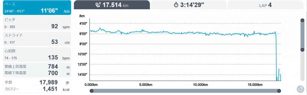 17時半から17キロのランニング。