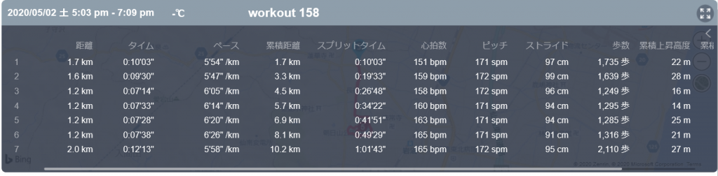 5月2日の走行距離 10.15km (6分04秒/km)(160bpm)