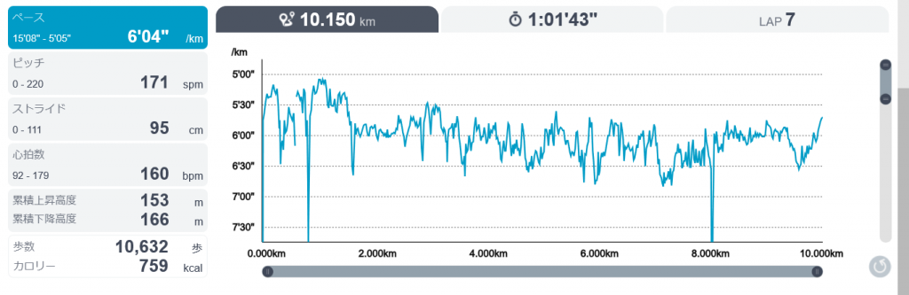 距離もいつもよりは短めの10キロで切り上げた。