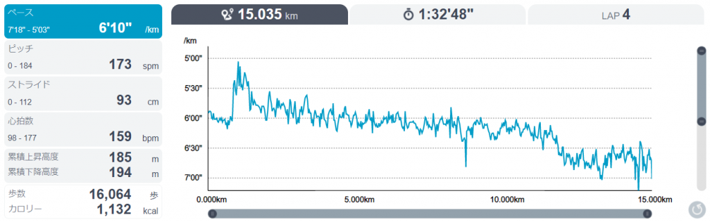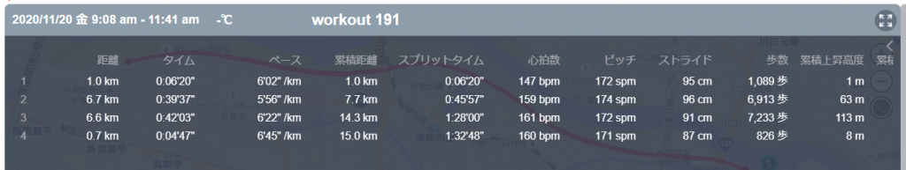 11月20日の走行距離 15.03km (6分10秒/km)(159bpm)