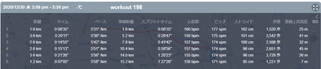 12月30日の走行距離 15.16km (5分46秒/km)(157bpm)