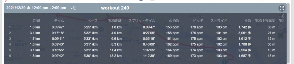 12月29日の走行距離 13.15km (5分31秒/km)(161bpm)