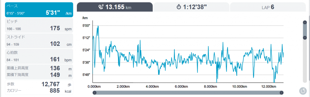 12時から13キロのランニング。