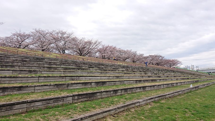 荒川の土手の桜はもう少しで満開というところ。