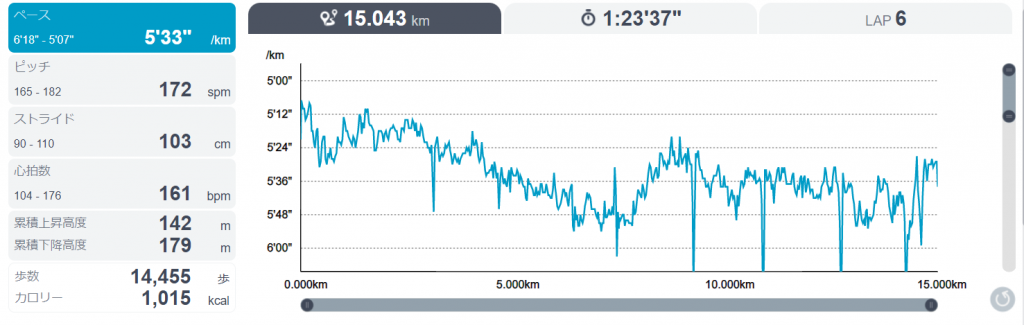 9時半から15キロのランニング。