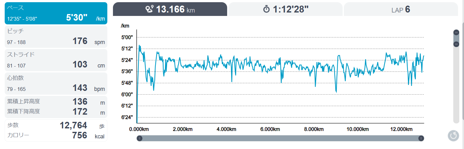 ペースダウンはしなかったけど、元々のペースをもう10秒ほど速くしたいところ。