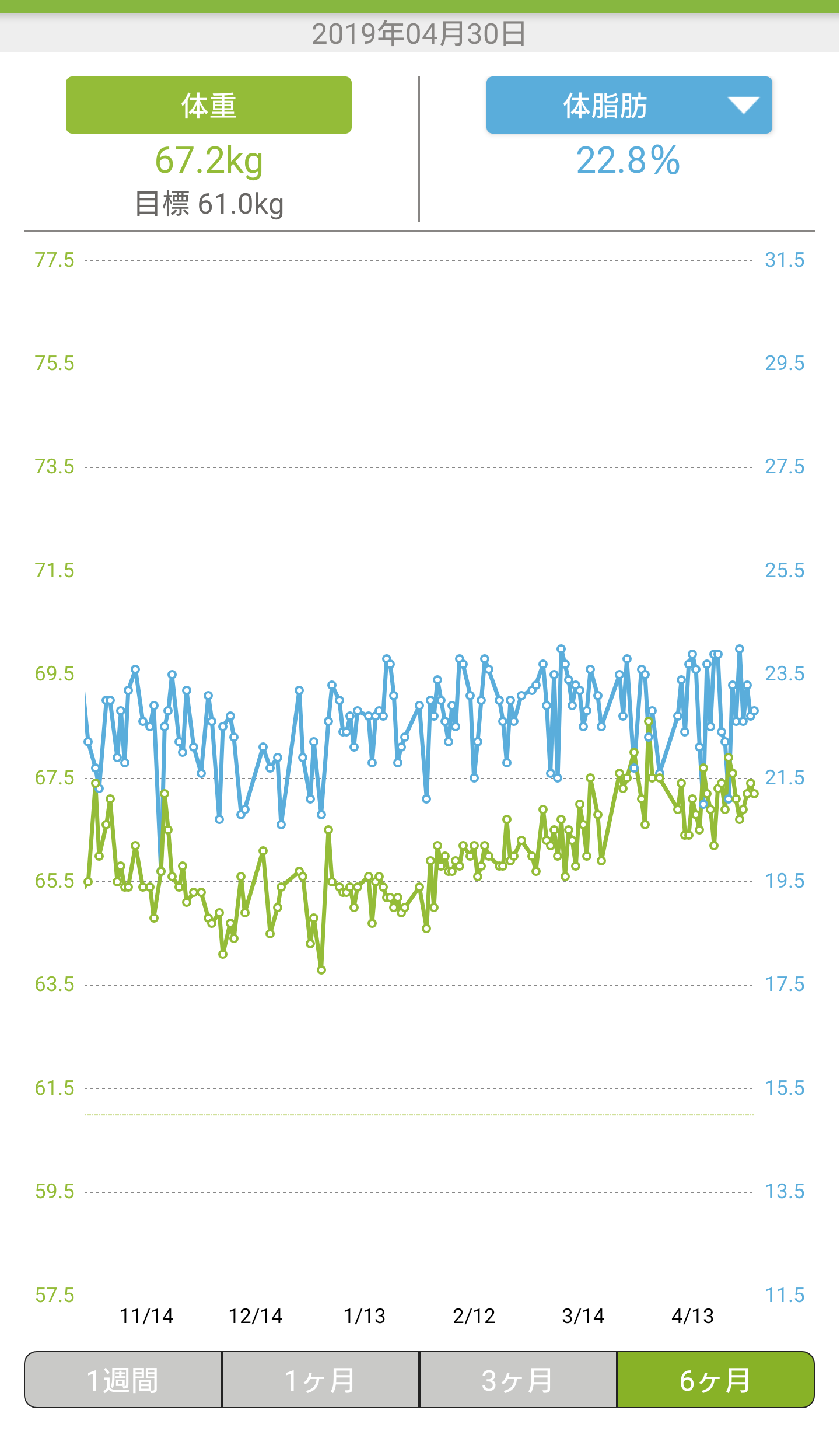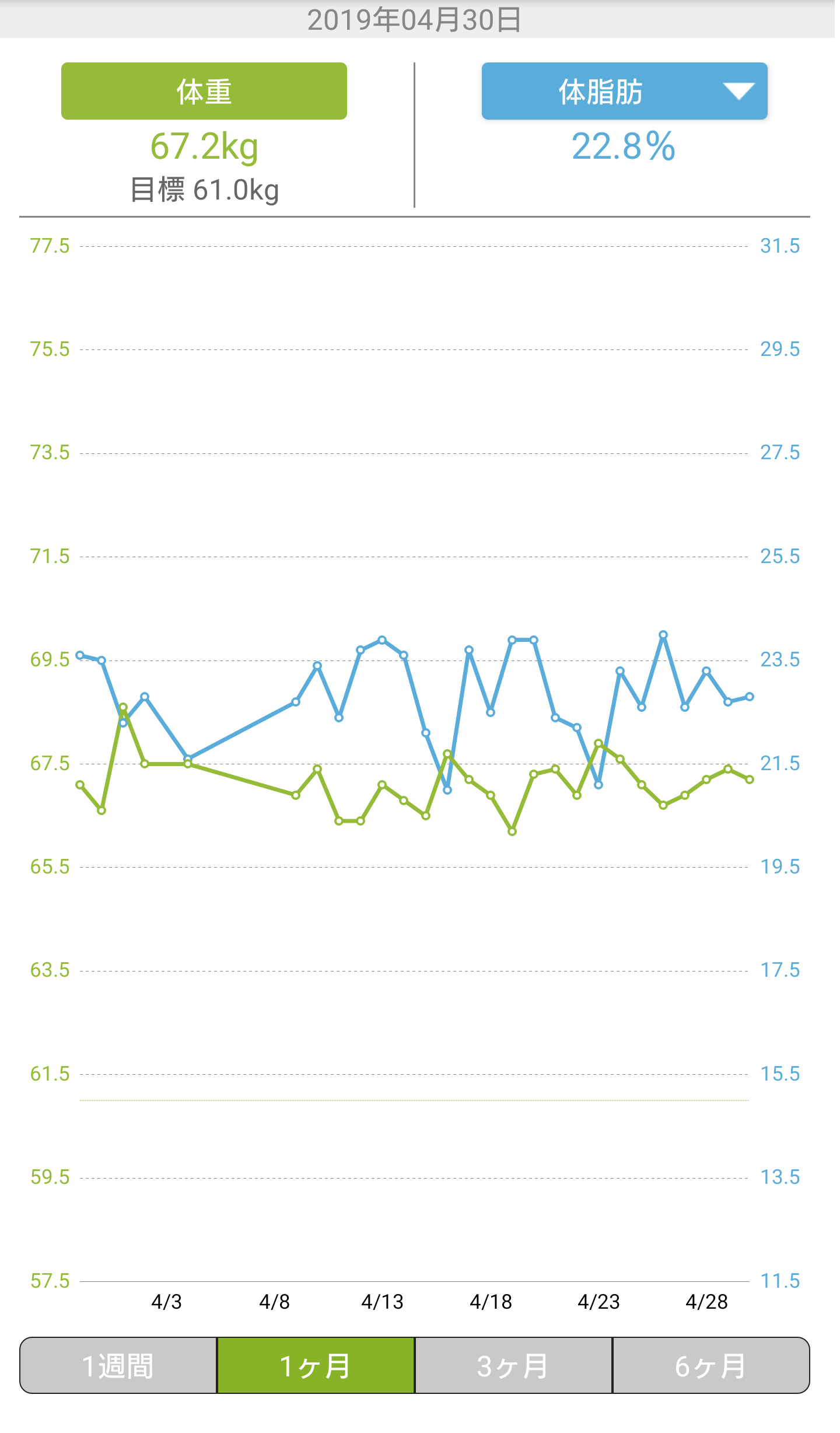 月末なので、あすけんでの体重の記録を公開する。
