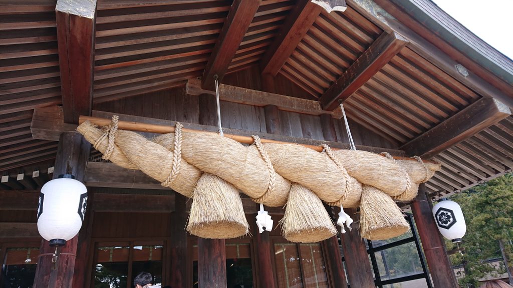 拝殿のしめ縄が巨大で圧倒された。