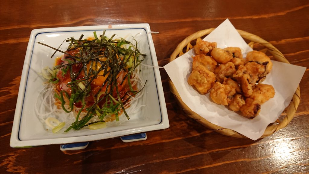 他にもたこのから揚げとねぎとろユッケを注文。