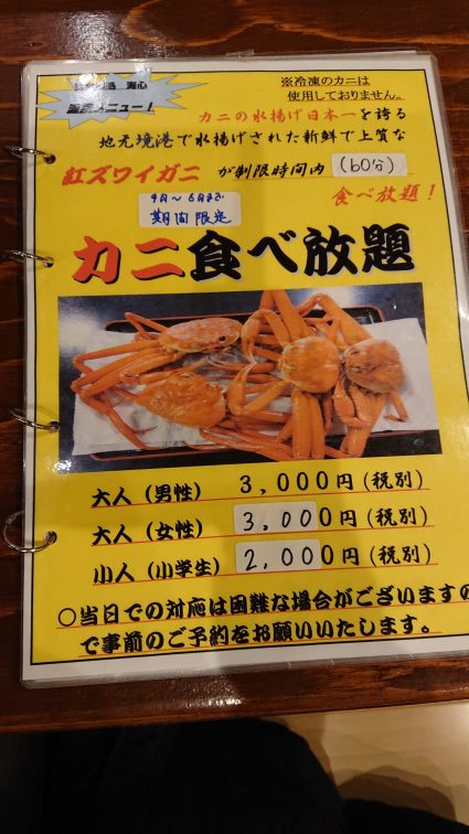 入口付近では蟹の食べ放題をやっている人が何人もいた。