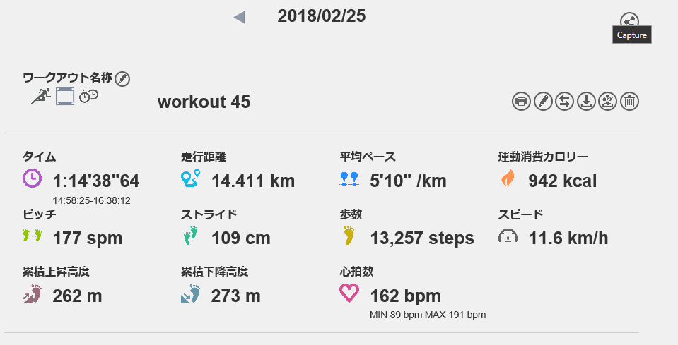 2月25日の走行距離 14.41km (5分10秒/km)(162bpm)