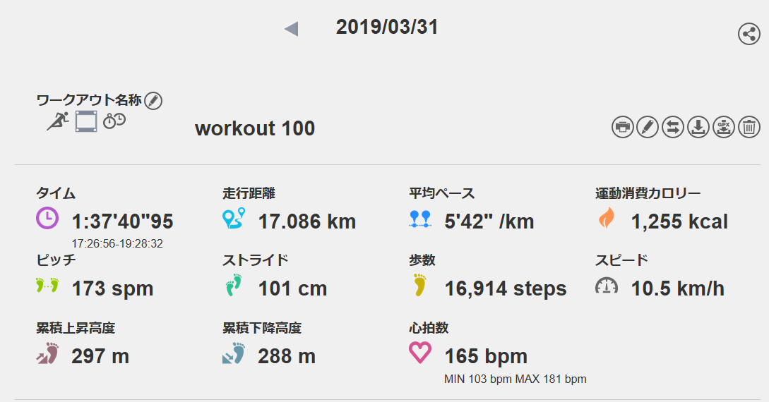 3月31日の走行距離 17.08km (5分42秒/km)(165bpm)