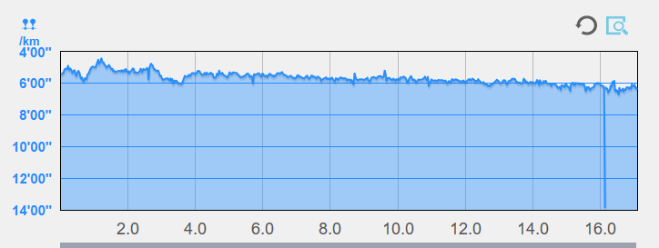 距離が進むにつれて、どんどんペースが落ちて、最後はキロ6分を超えてしまうほど。