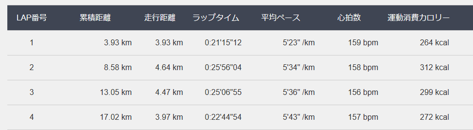 4月27日の走行距離 17.02km (5分34秒/km)(157bpm)