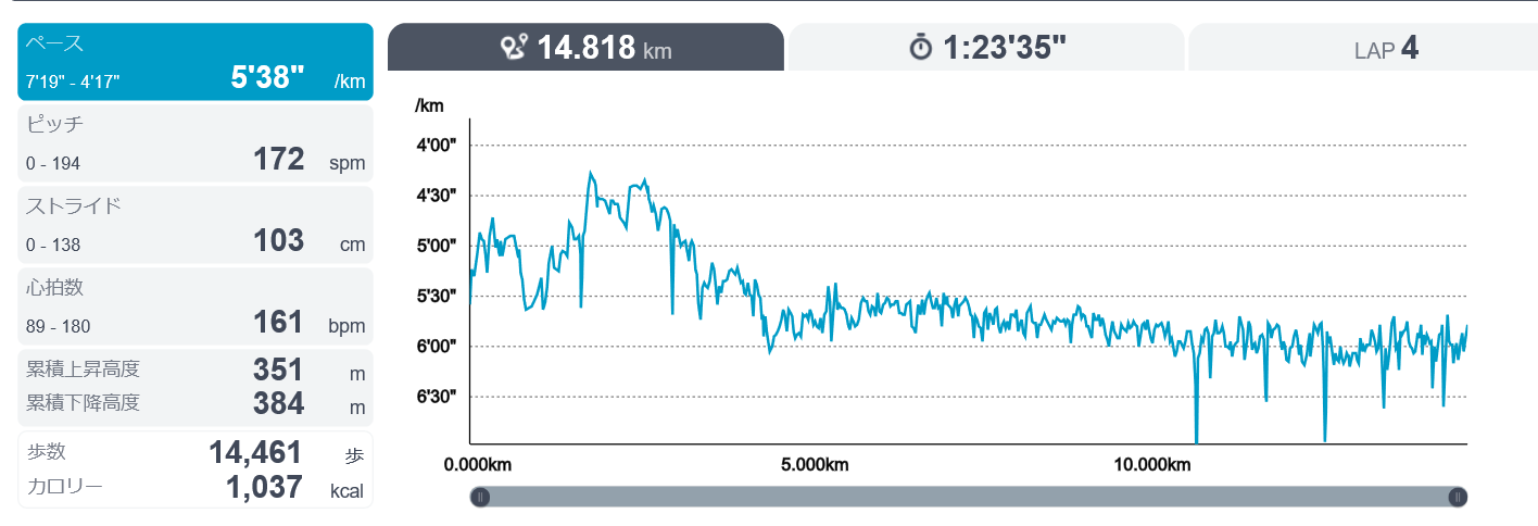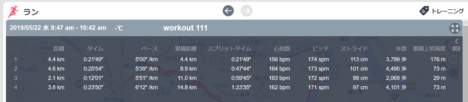 5月22日の走行距離 14.81km (5分38秒/km)(161bpm)