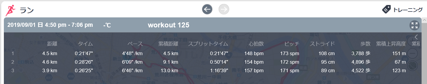 9月1日の走行距離 13.04km (5分52秒/km)(154bpm)