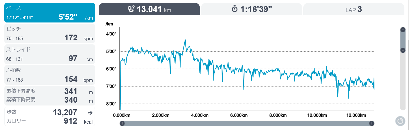 序盤だけキロ5分を切るようなペースで走ったことになっている。