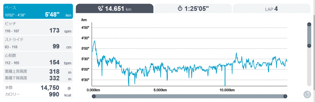 今日は終盤にペースが落ちない走りができた。