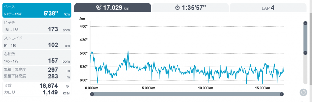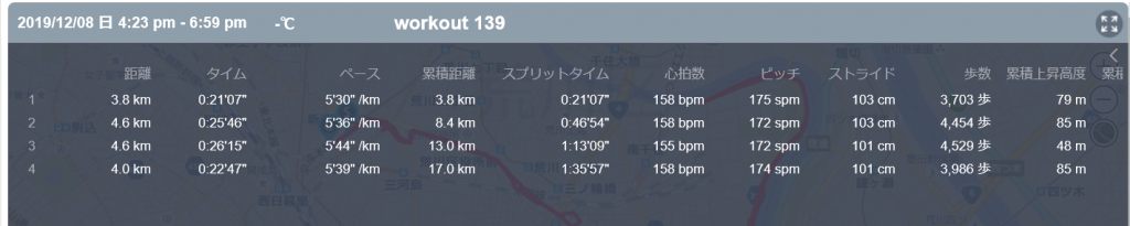 12月8日の走行距離 17.02km (5分38秒/km)(157bpm)