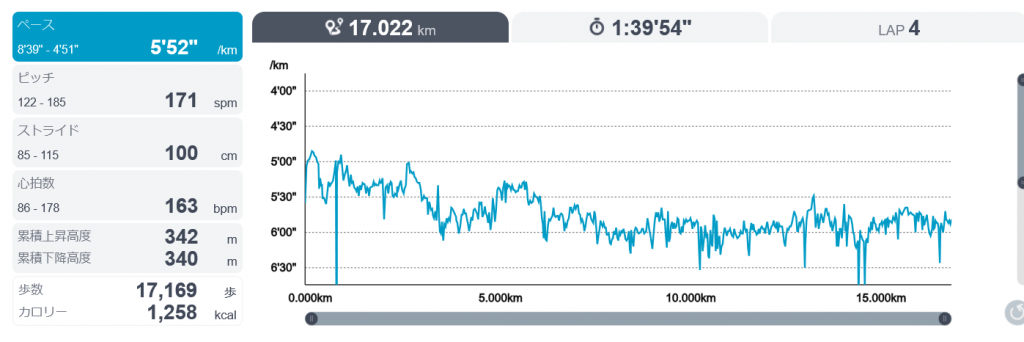 15時から17キロのランニング。