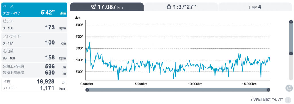 ペースは比較的一定で走れた。