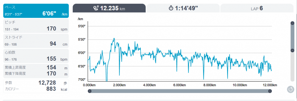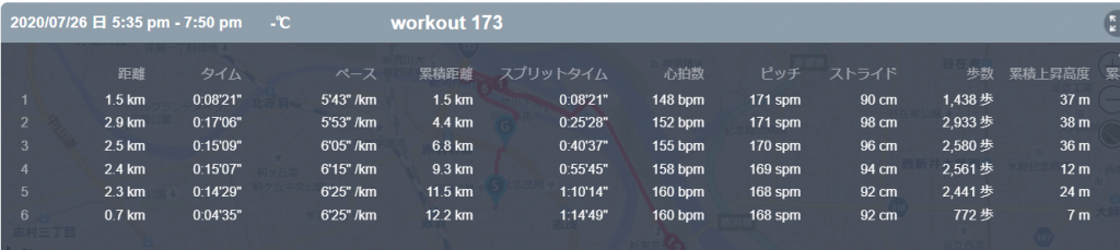 7月26日の走行距離 12.23km (6分06秒/km)(155bpm)