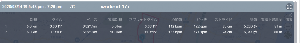 8月14日の走行距離 11.01km (6分06秒/km)(148bpm)