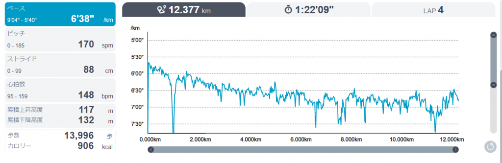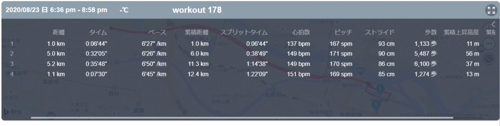 8月23日の走行距離 12.37km (6分38秒/km)(148bpm)