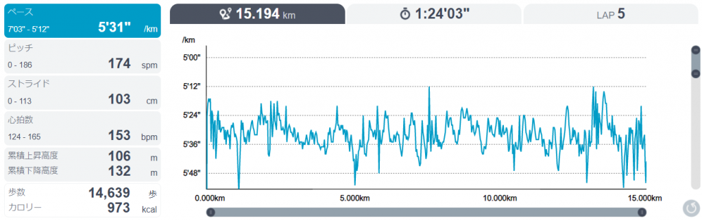 ペース自体も先週よりも速いぐらいだったので、言うことなし。