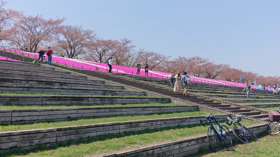 荒川の土手の桜はもう見頃は終わっていたけど、芝桜は満開だった。
