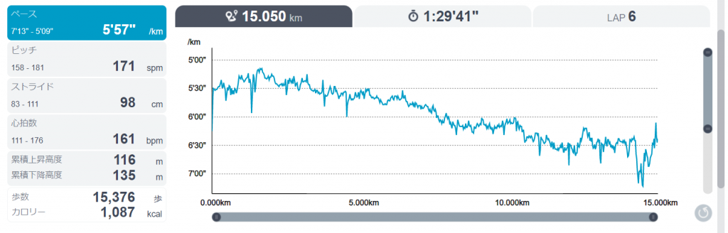 11時から15キロのランニング。