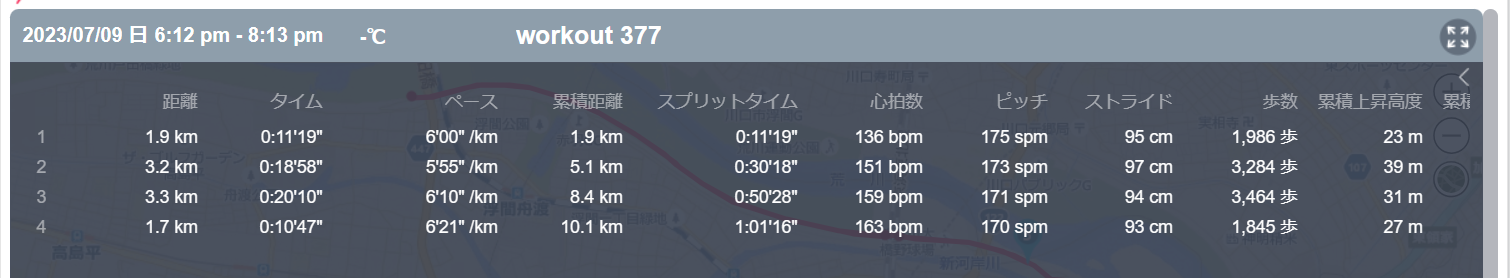 7月9日の走行距離 10.05km (6分05秒/km)(153bpm)