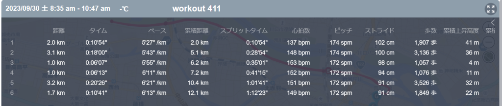 9月30日の走行距離 12.11km (5分58秒/km)(148bpm)