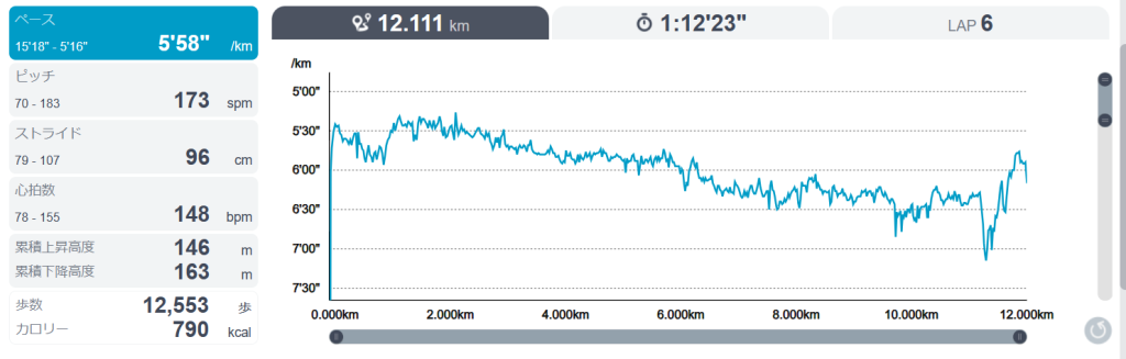 なんとか12キロ走り切れた。