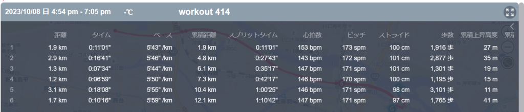 10月8日の走行距離 12.10km (5分50秒/km)(148bpm)