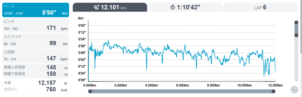 前回は同じ12キロで後半バテたけど、今回の方が良かった。