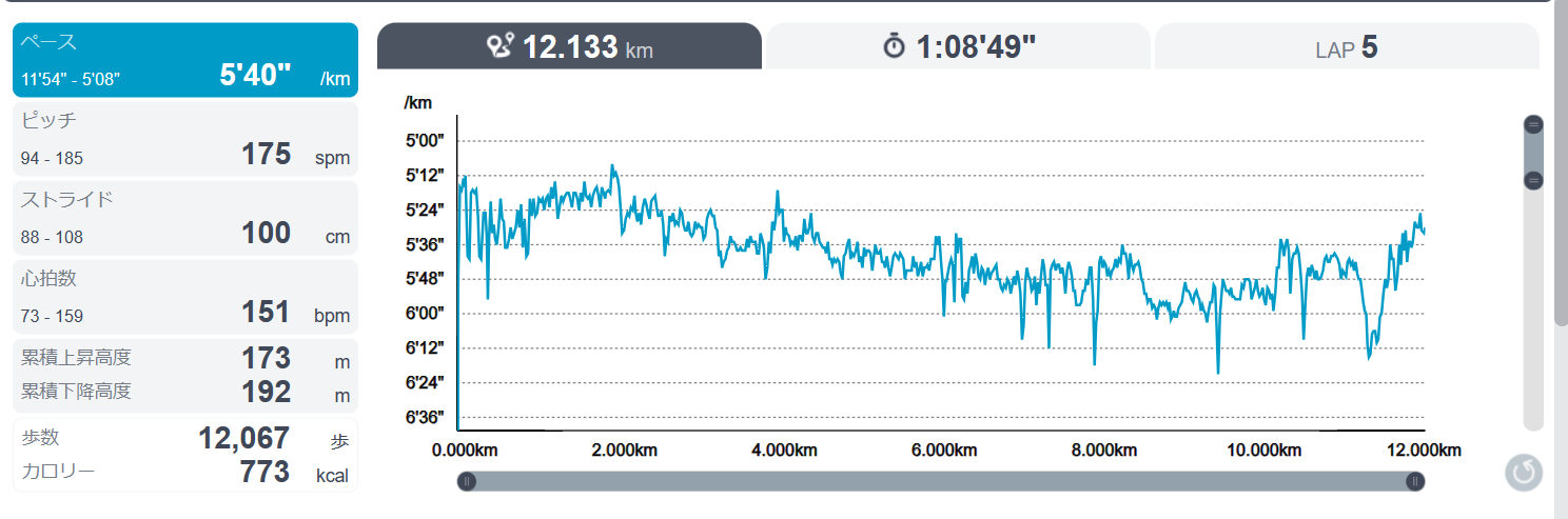 もう少し距離を伸ばそうかと思っていたけど、午後に予定があったので、12キロでやめた。
