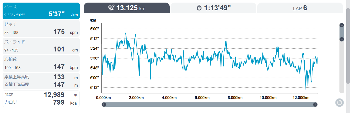 10時半から13キロのランニング。