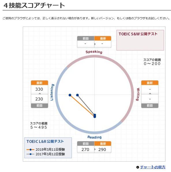 2018年3月11日(日)に受けたTOEIC® Listening & Readingの結果がわかった。
