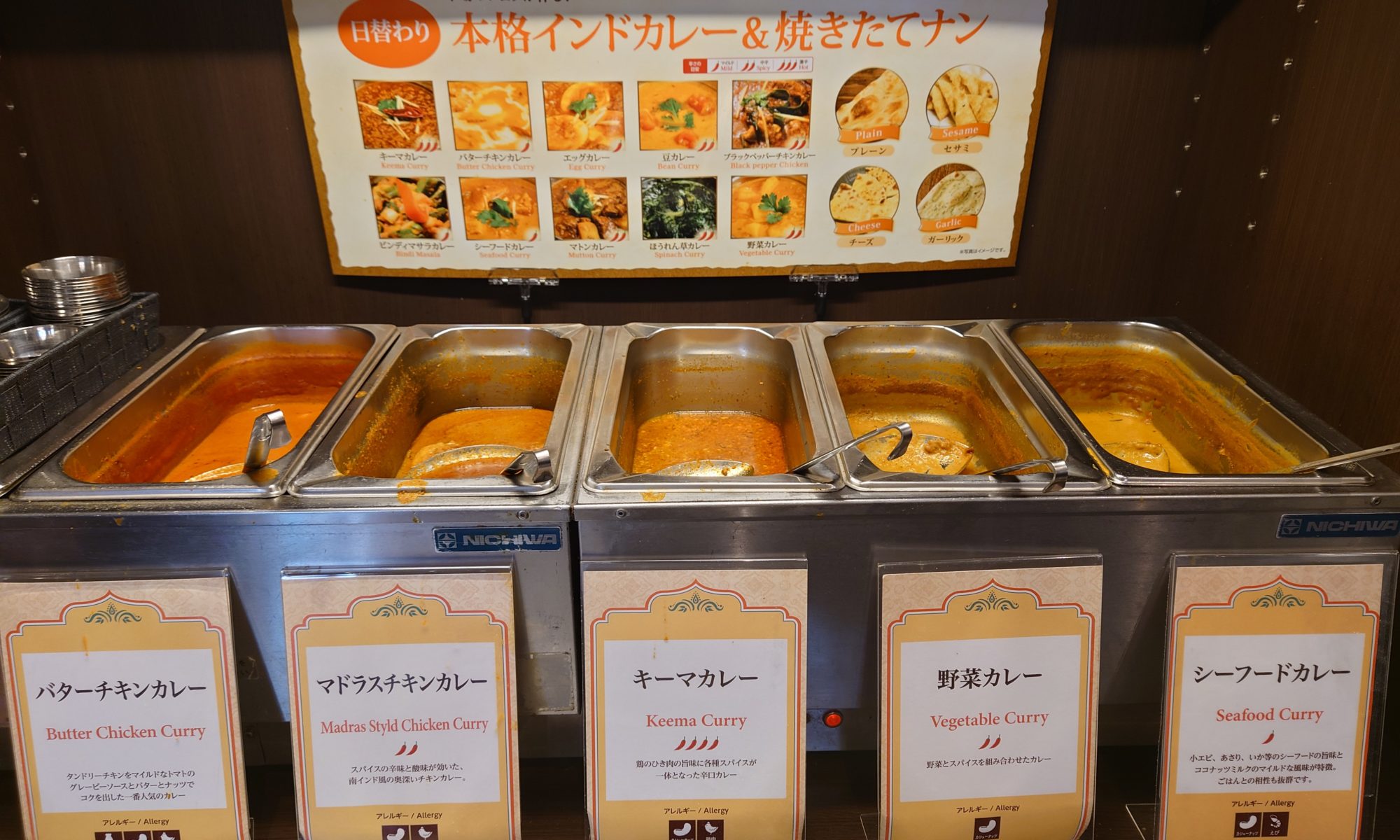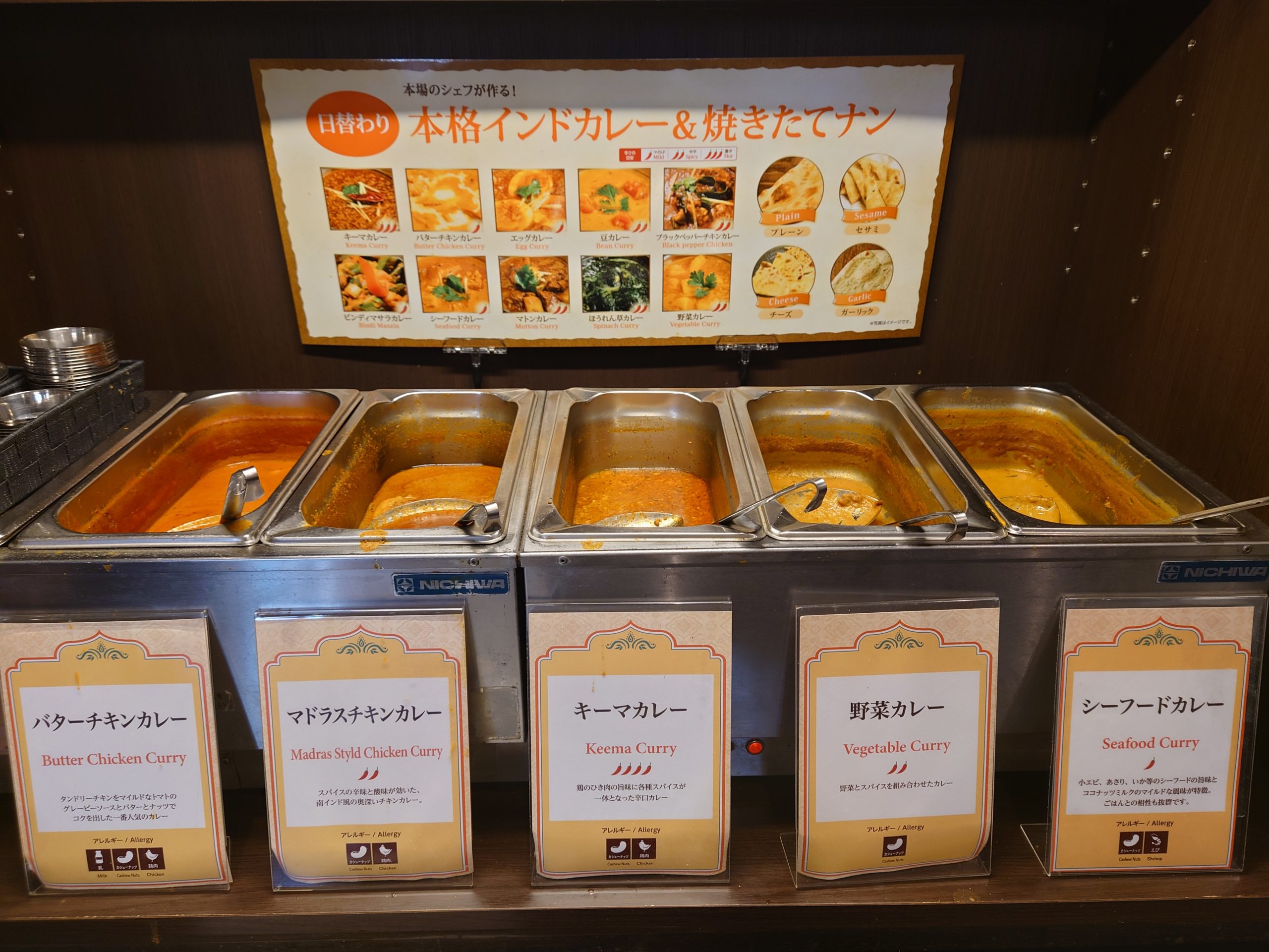 日替わりでカレーの種類は変更になるようだが、今日は以下の5種類だった。