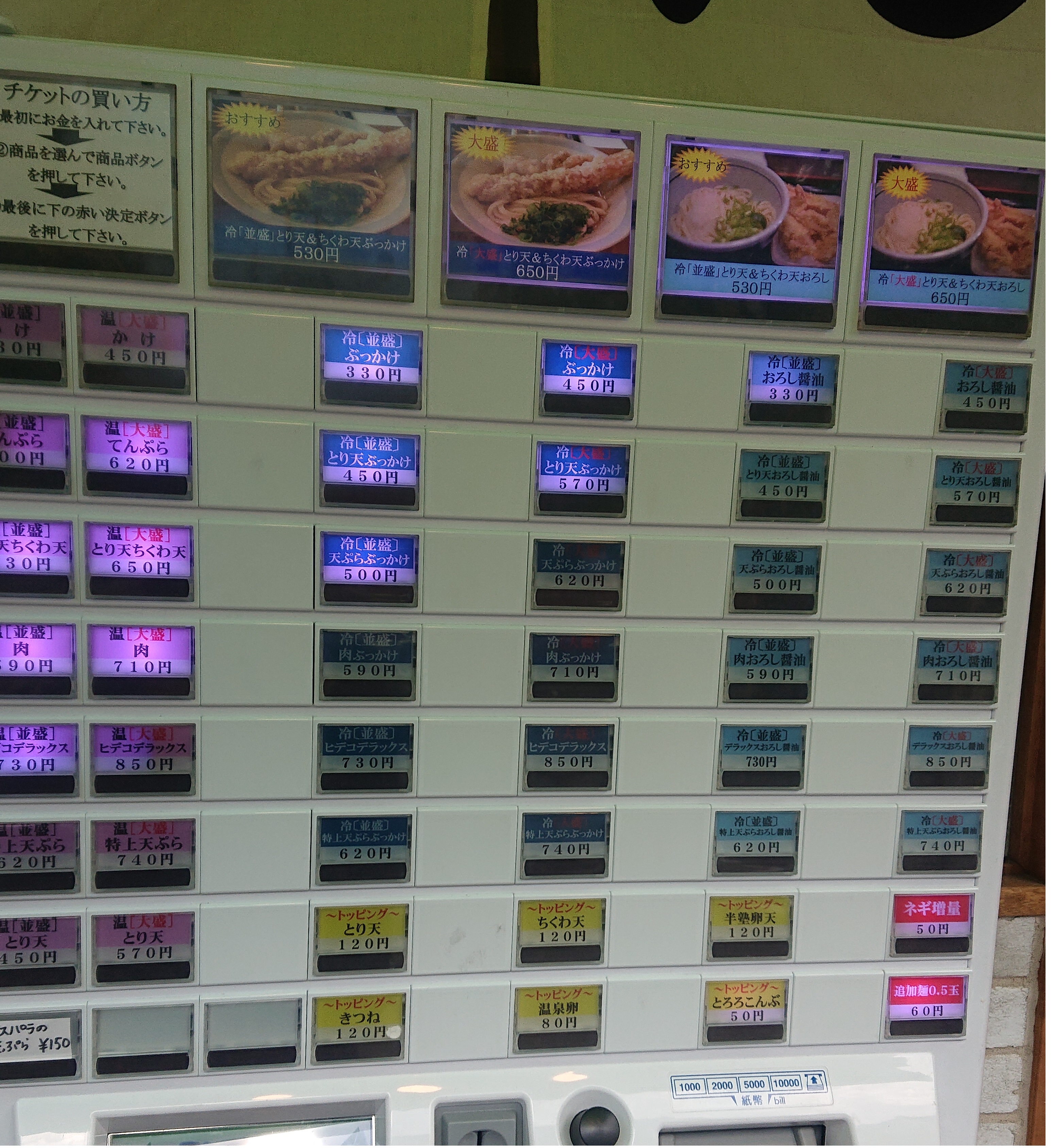 入口の券売機でおすすめになっているとり天&ちくわ天ぶっかけ530円の食券を購入。