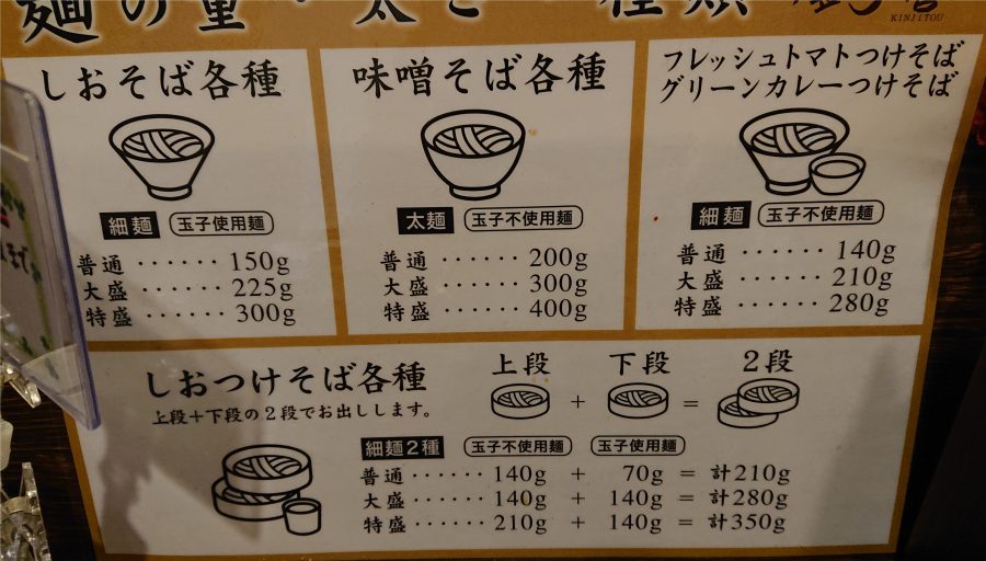 食券を渡すときに麺の量を並盛、中盛、大盛が選べる。
