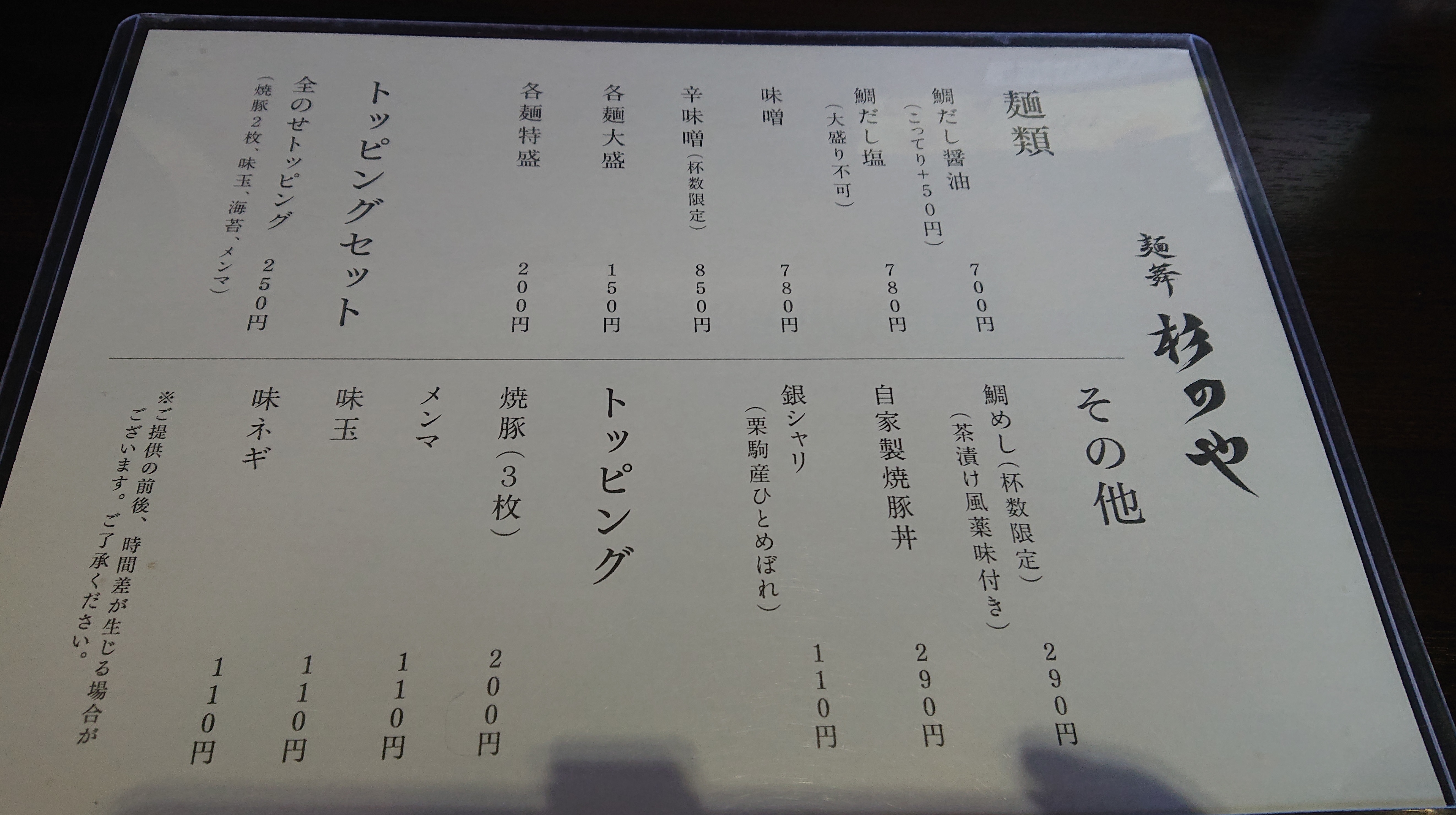 麺は鯛だし醤油700円(こってり+50円)を注文。