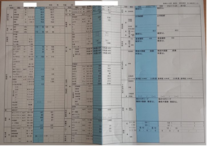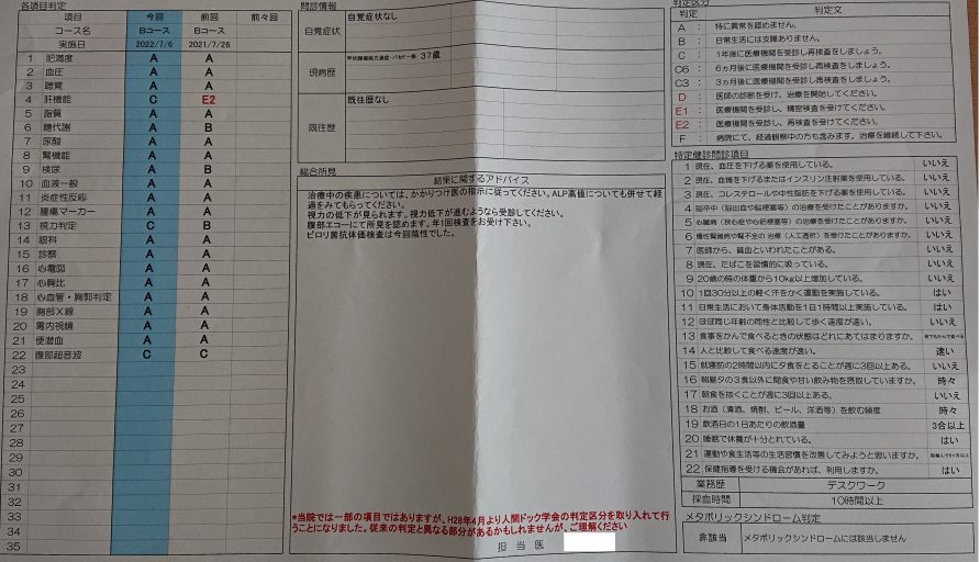 2022年7月6日(水)に受診した人間ドックの結果が郵送で届いた。