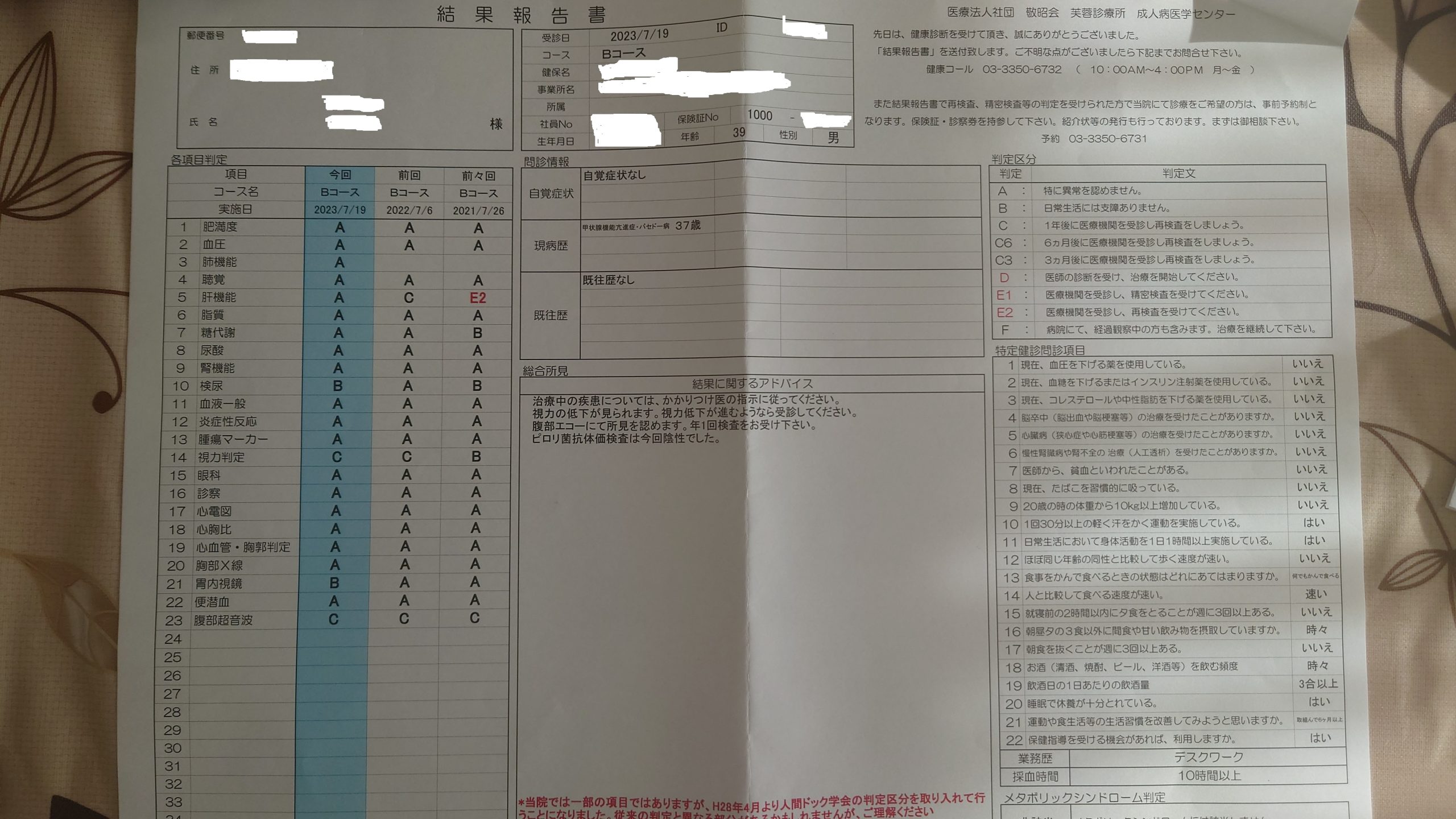 2023年人間ドックの結果