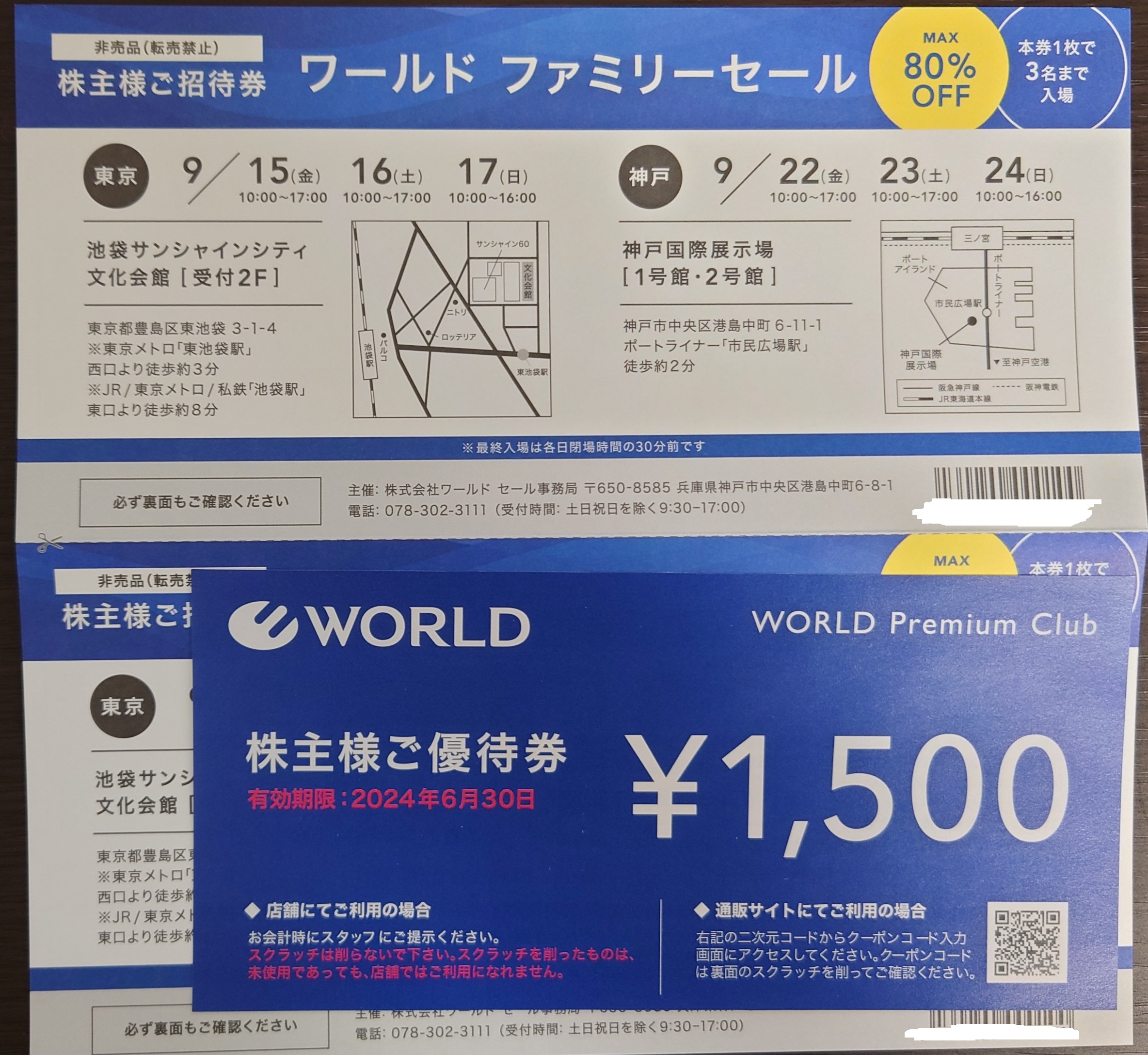 投稿日: 2023年7月1日 投稿者: wpmasterワールドの株主優待が届いた(2023年6月) 2023年6月30日(金) ポストにワールドの株主優待が届いていた。 100株の優待は1,500円分の優待券とファミリーセールの招待券。 ファミリーセールはMAX80%OFF。 前回のファミリーセールは知り合いにあげてしまったので、自分たちでは行かなかった。 ワールドの現在の株価は1,649円。 配当利回りは2.91%。 PERは10.80倍。 含み益が29,000円あるので、そろそろ利確しようかな。