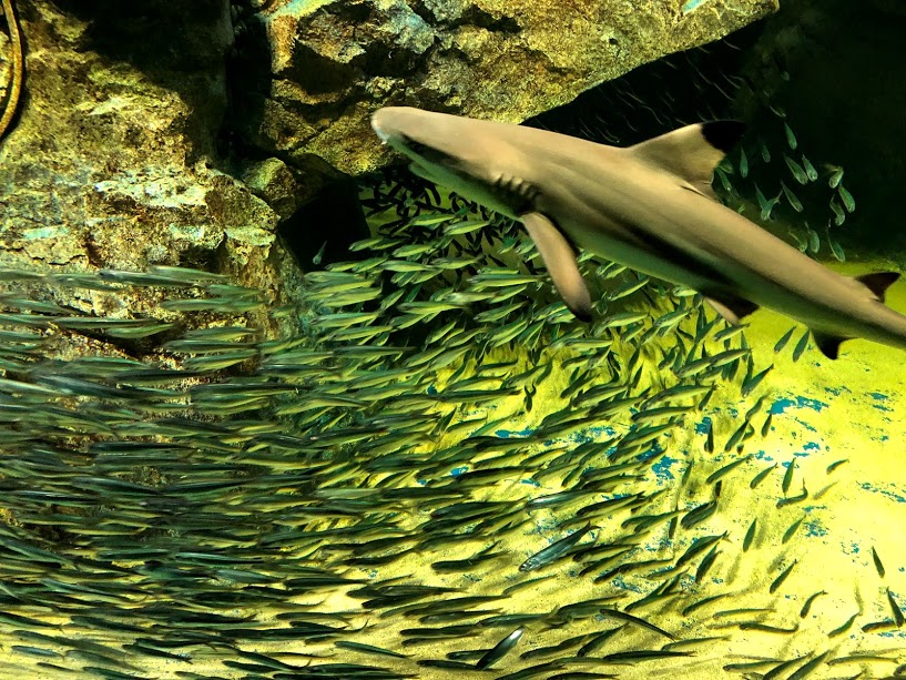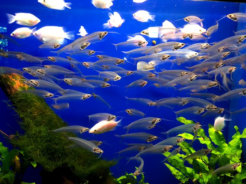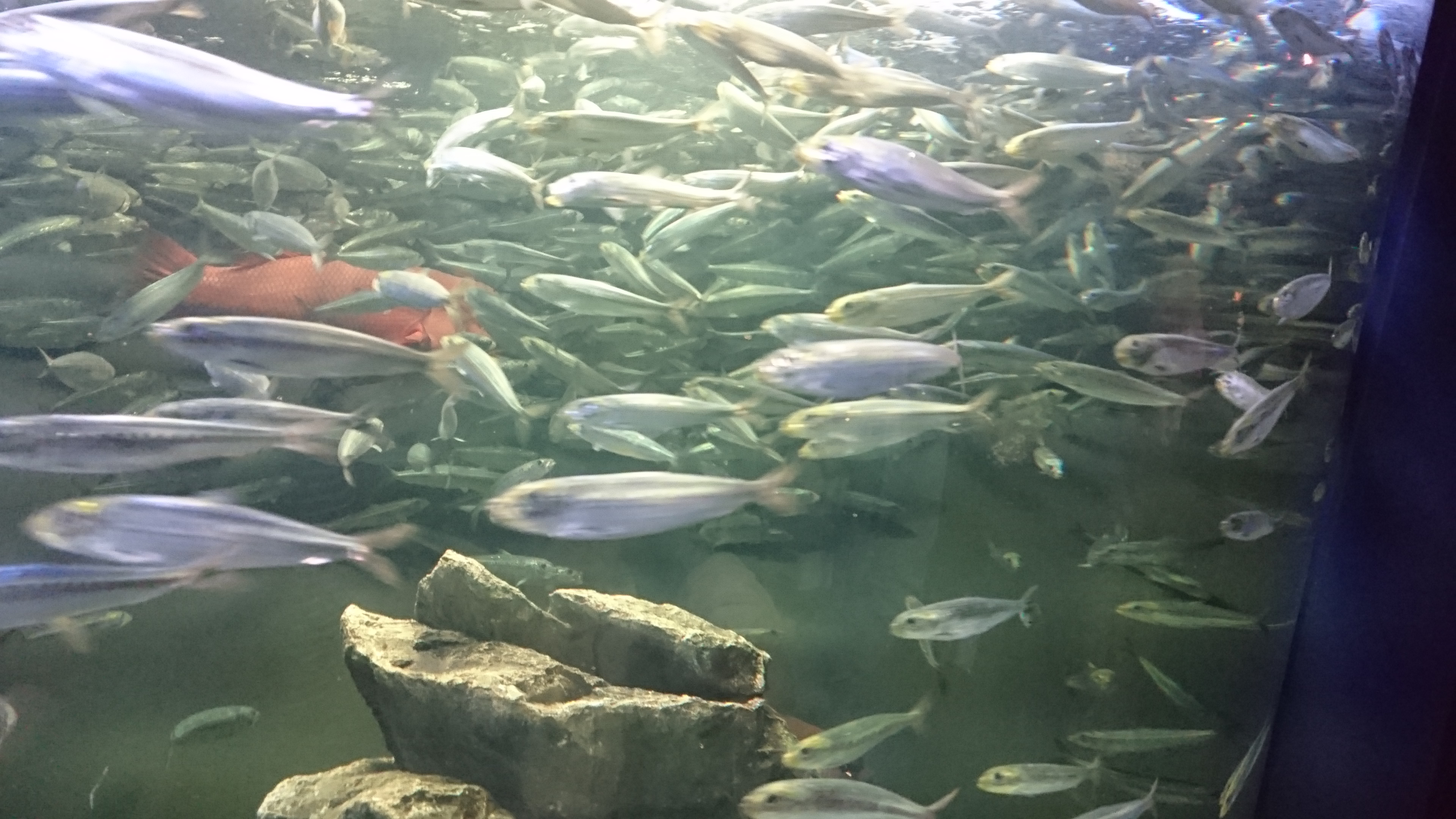 鰯(だったかな?)の群れがグルグル回っている水槽。